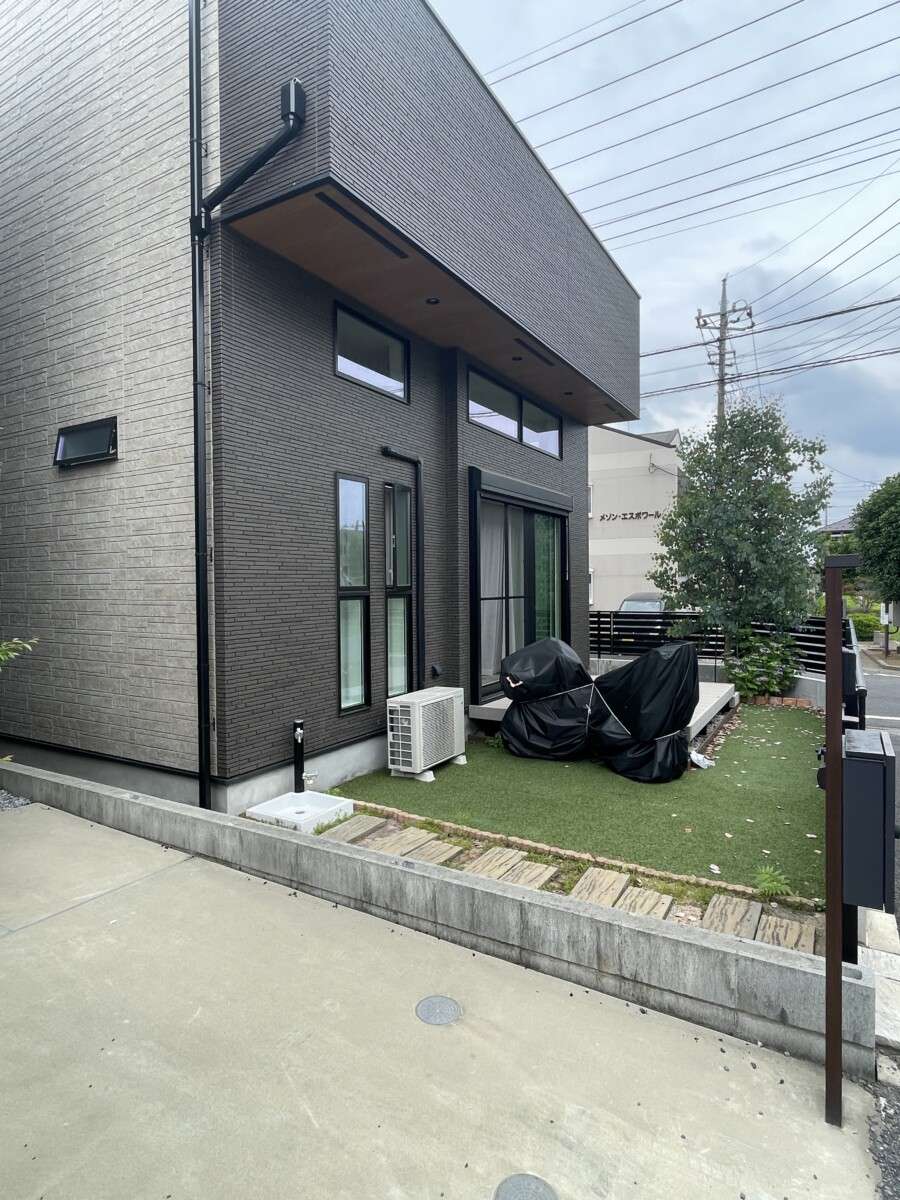 自分たちで人工芝を敷くなど、DIYでお庭づくりを楽しんでいた施主様。