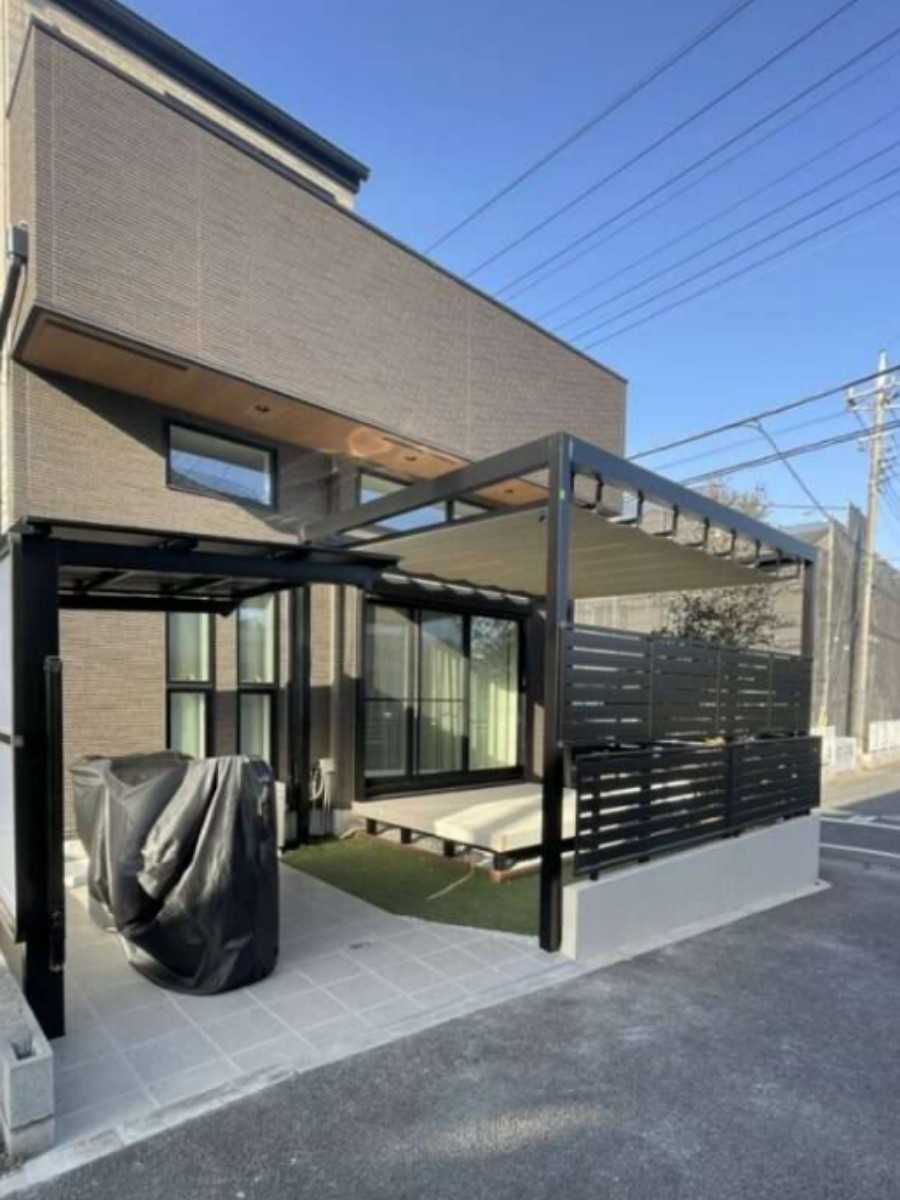目隠しと日除けが加わったことで、ウッドデッキが「家族のくつろぎスペース」へと変化しました。