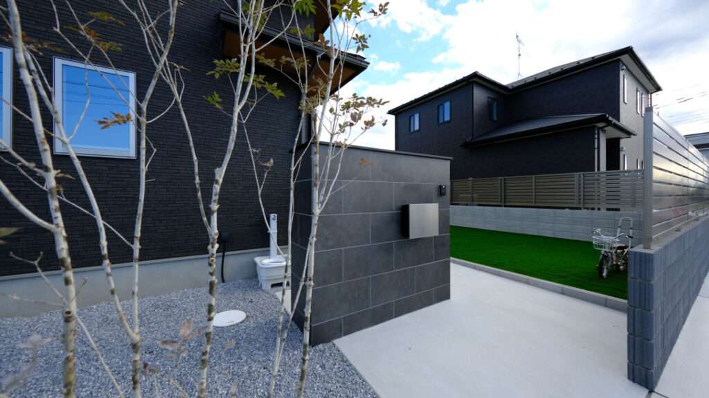 広い土地の外構予算にお悩みの方や、お子様が安心して遊べる目隠しのあるお庭を作りたい方におすすめのおしゃれで実用的な新築外構施工事例です