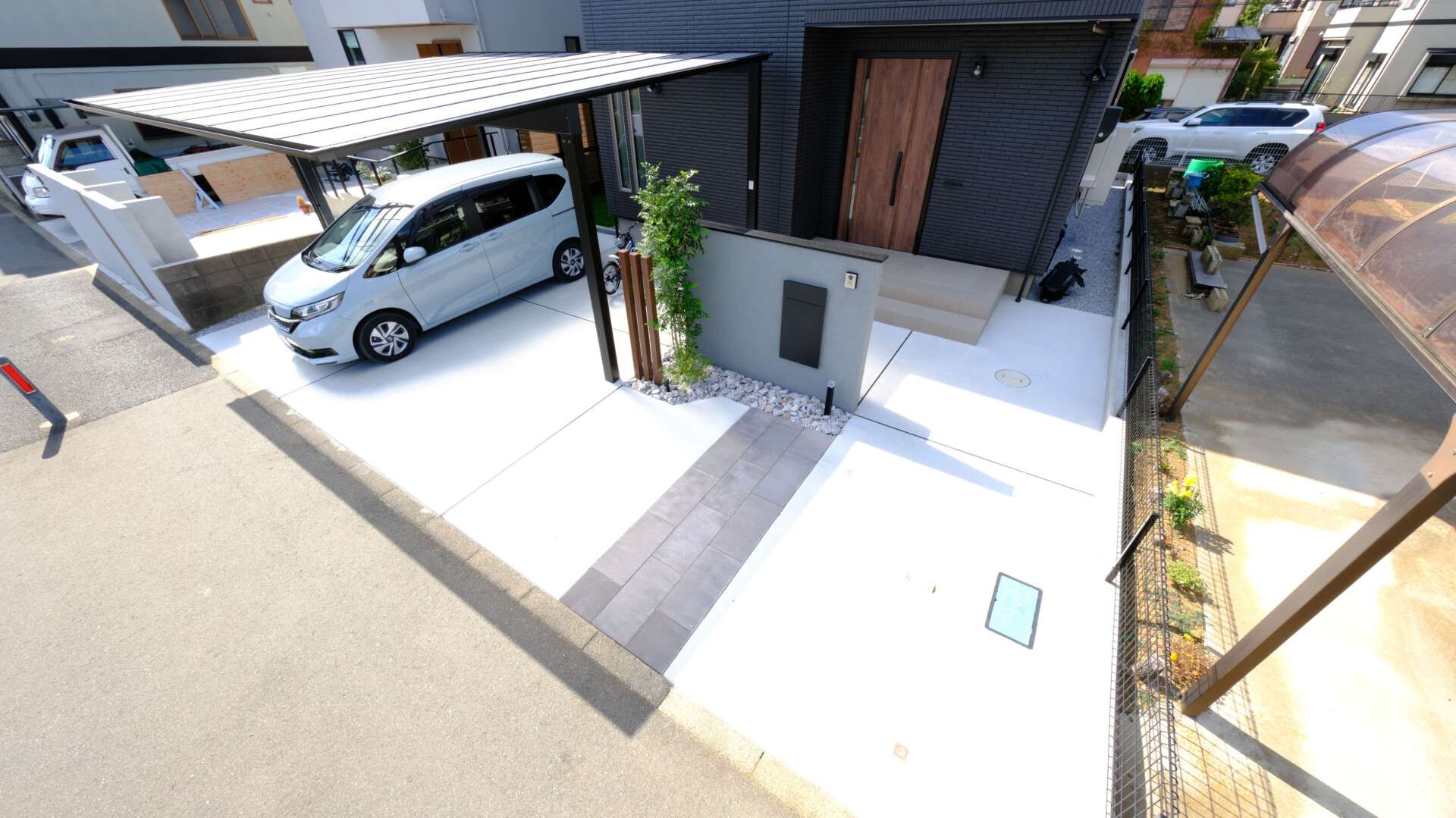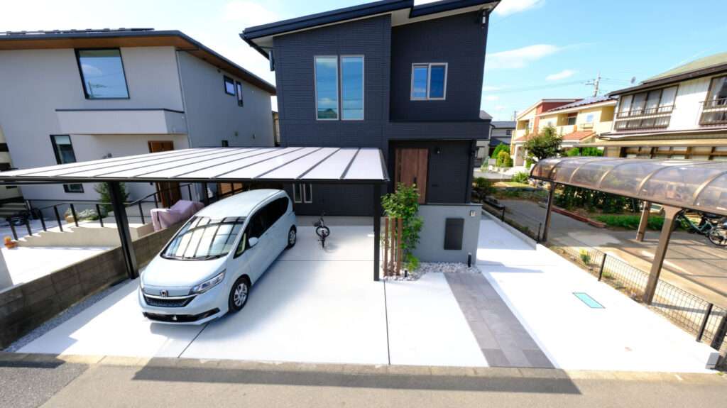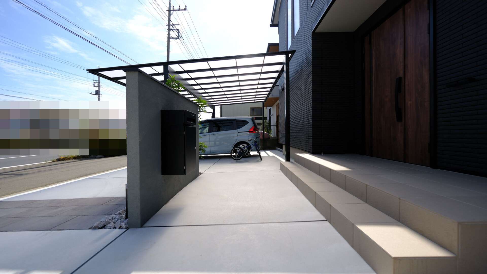 YS3 フーゴ 木の棒 宅配ボックス埋め込み 柱移動 導線スムーズ 人口芝 大きな自然石 エクレル アクアルージュ ローメンテ 一条 かっこよく どうしたらいいかわからない シンプルかつモダン、ロックガーデン、駐輪場兼