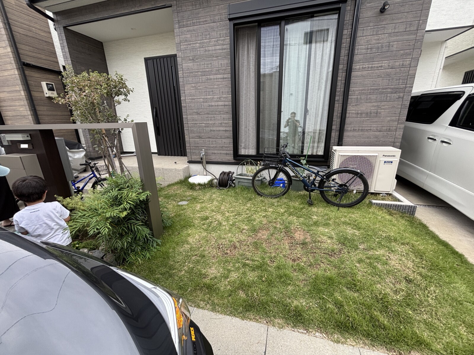 今回は、「車や自転車を置く場所が足りない」「芝生のお手入れが想像以上に大変」といった、住んでみてわかったリアルなお悩みを解消するエクステリアリフォームを提案しました。