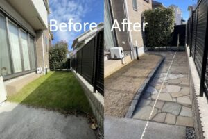天然芝を石張りにしたローメンテナンスロックガーデンのリフォーム施工例(川口市)